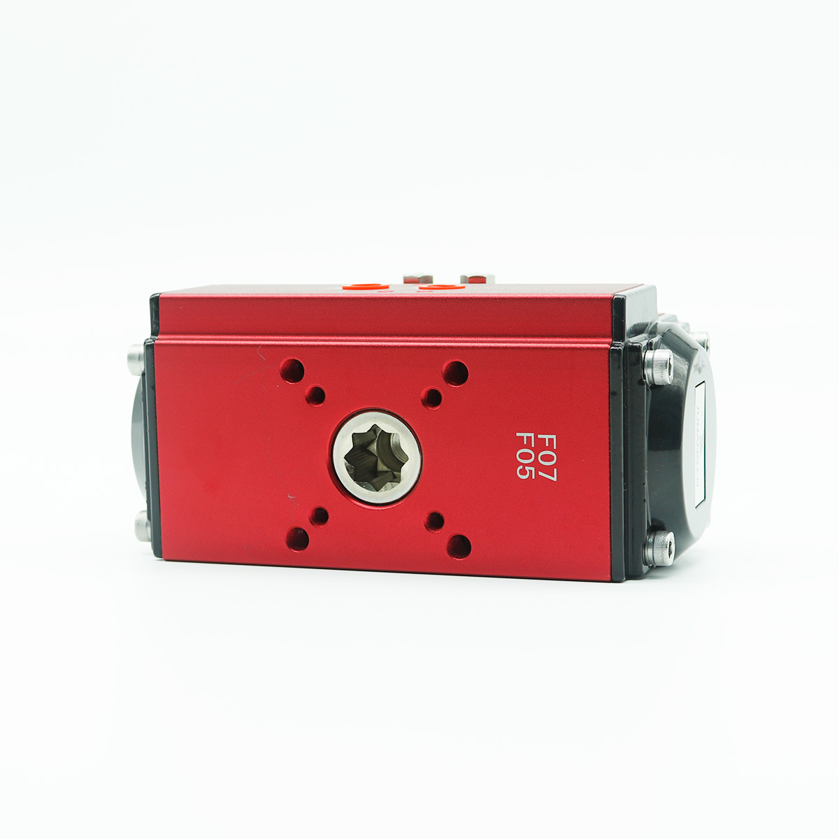 Die Oberseite des doppelt wirkenden pneumatischen Aktuators entspricht der Standardinstallation von VDI/VDE 3845, die für die Installation von Positionierern, Limitschalter und anderen Zubehör geeignet ist.